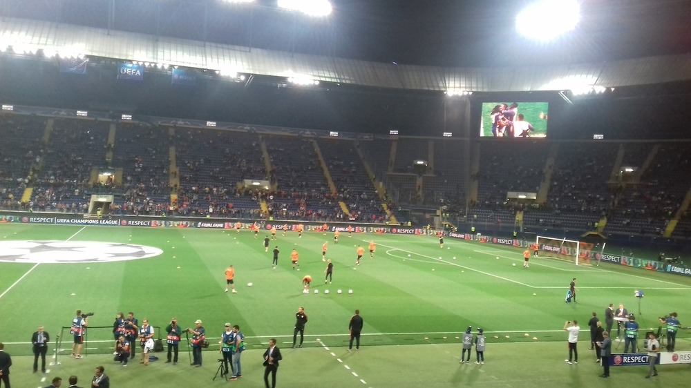 21.26 Стадион "Металлист" встретил горняков бурной овацией, когда они вышли на разминку.