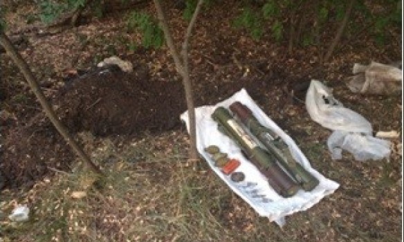 Сотрудники СБ Украины также обнаружили у одного из членов агентурно-боевой группы координаты тайника с оружием и боеприпасами для совершения диверсий. Правоохранители изъяли из тайника два гранатомета РПГ-22, четыре гранаты Ф-1 и РГД-2 с запалами и тротиловую шашку.