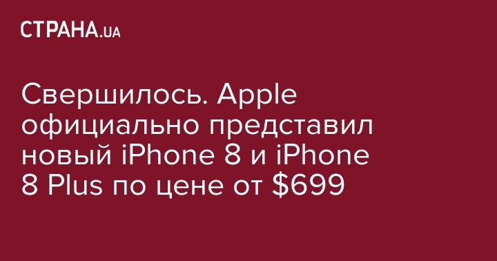 Свершилось. Apple официально представил новый iPhone 8 и iPhone 8 Plus по цене от $699