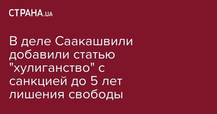 Как сообщала "Страна", к обвинению Саакашвили добавили уголовную статью. Ему грозит до 2 лет тюрьмы.