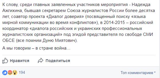 "15 сентября в Николаеве глава НСЖУ С.Томиленко в компании с европейскими и российскими "коллегами" проводит "региональную дискуссию" на тему "Безопасность журналистов: базовый стандарт свободных медиа". Среди обговариваемых тем – "свобода слова и плюрализм мнений во время конфликтов, борьба с пропагандой войны и насилия и пр.". - написал он, особо подчеркнув участие в мероприятии российских журналистов.