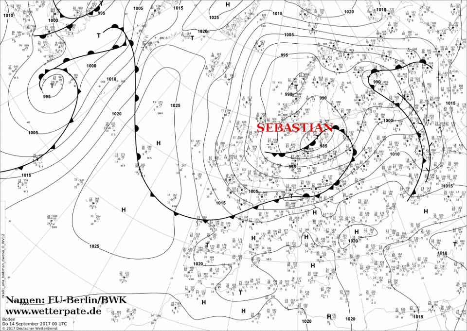 Между тем, как отметила синоптик, циклон Себастьян с центром над Балтийским морем мутит погоду в Западной Европе, дотягивает дождями до полуночи, Скандинавии и немного в Восточную Европу.