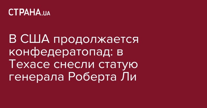 Городской совет Далласа проголосовал за снос статуи, находившейся в парке, который также назван в честь генерала Ли, на прошлой неделе. Памятник был демонтирован с помощью башенного крана, после чего его перевезли на одну из ныне недействующих авиационных баз на окраине города. Он будет находиться там до тех пор, пока власти не примут решение о его дальнейшей судьбе.