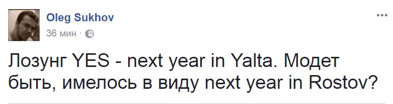 Пользователь Олег Сухов пошутил насчет проведения форума YES в Ростове в следующем году.