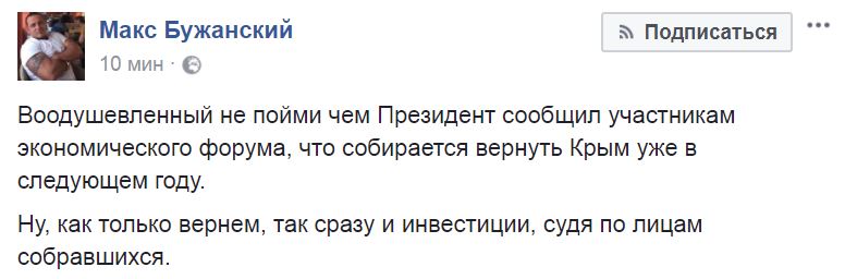 Блогер Макс Бужанский заявил, что как только вернем Крым, так сразу в Украину инвестиции.