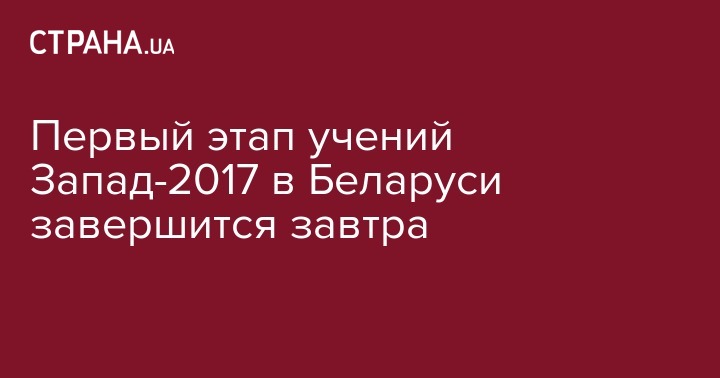 Первая фаза совместных военных учений Беларуси и РФ "Запад-2017" будет завершена завтра, 16 сентября. Об этом рассказал пресс-секретарь министерства обороны Беларуси Владимир Макаров во время брифинга в Минске, передает УНН.