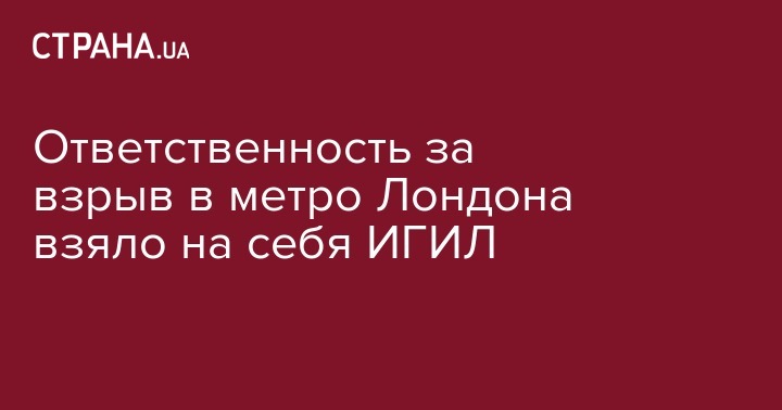 Террористическая группировка "Исламское государство" взяла на себя ответственность за взрыв на станции "Парсонс-Грин" в метро Лондона, сообщает Reuters.