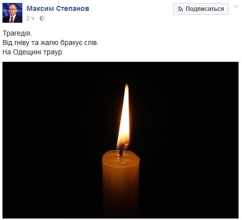 "Трагедия. От гнева и сожаления не хватает слов. В Одесской области траур", - написал Степанов.