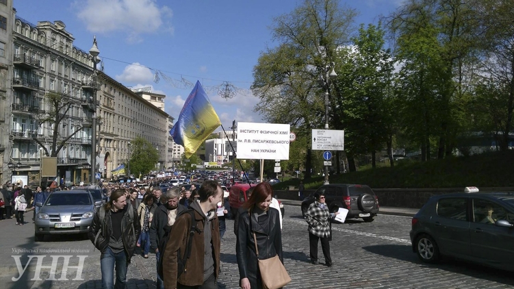 Марш ученых заблокировал движение транспорта по улице Грушевского, фото: УНН