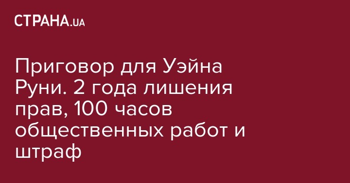 Приговор для Уэйна Руни. 2 года лишения прав, 100 часов общественных работ и штраф