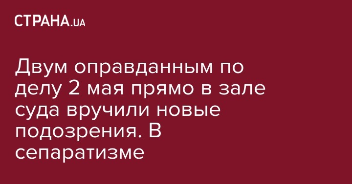 Оправданным по делу 2 мая предъявляют новое подозрение по статье 110 УК Украины (сепаратизм), сообщает "Таймер".