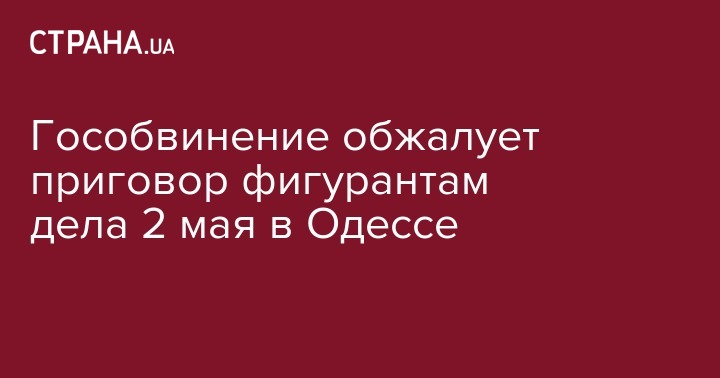 Прокуратура намерена обжаловать приговор фигурантам дела о событиях 2 мая 2014 года в Одессе (в части событий на Греческой площади). Об этом сообщила журналистам у здания Ильичевского городского суда (Черноморск, Одесская обл.) представитель стороны гособвинения Ирина Куприна, передает Интерфакс-Украина.