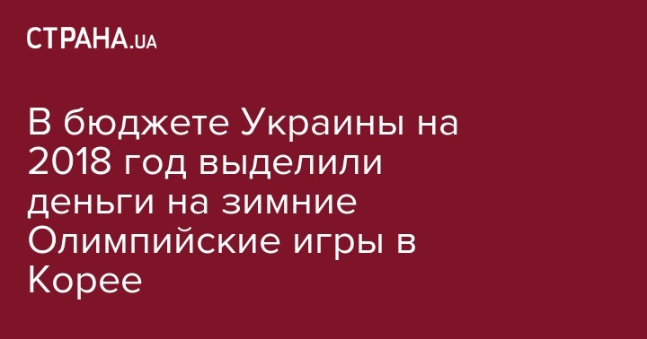 В бюджете Украины на 2018 год выделили деньги на зимние Олимпийские игры в Корее