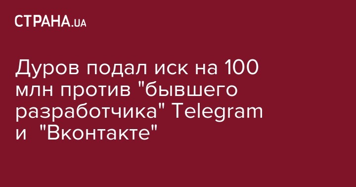 Дуров подал иск на 100 млн против "бывшего разработчика" Telegram и "Вконтакте"