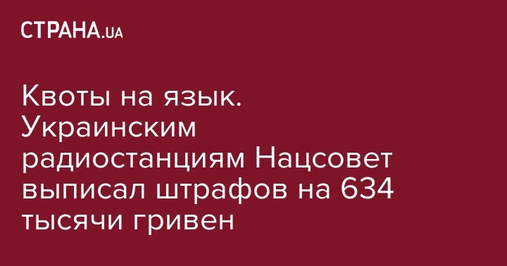 Национальный совет по вопросам телевидения и радиовещания за последние полгода оштрафовал радиостанции, которые не выполняли закон о 25% квоте украинского языка и музыки в эфире, суммарно на 634 тысячи грн.