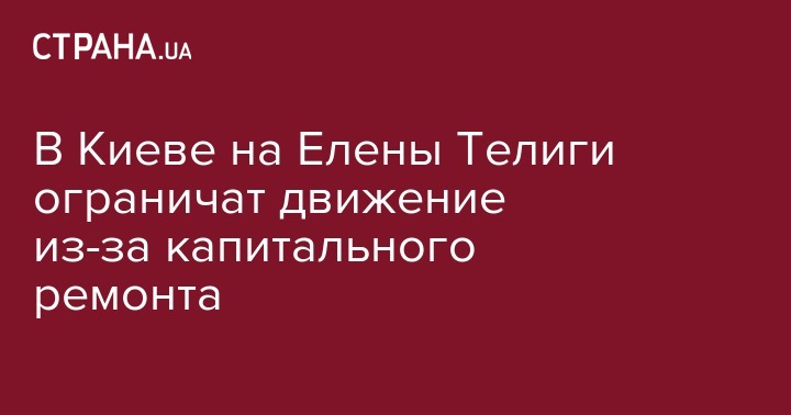 В Киеве сегодня, 19 сентября, вводится частичное ограничение движение на ул. Елены Телиги в связи с капитальным ремонтом. Об этом сообщает пресс-служба "Киевавтодора" в Facebook.