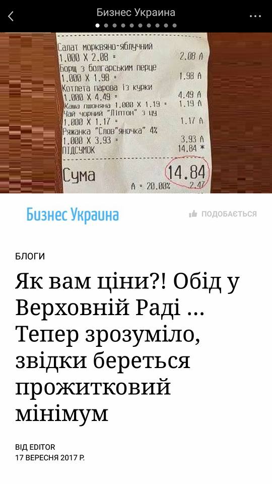 По его словам, новость является фейком, в доказательство этого он опубликовал фото меню из столовой Верховной Рады и ценами на продукты.