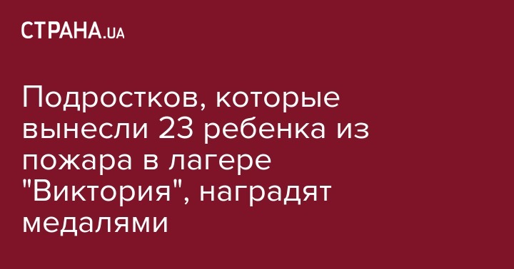 Председатель Одесской ОГА Максим Степанов инициировал награждение двух подростков, которые спасли 23 ребенка в ночь на 16 сентября во время пожара в детском спортивном лагере "Виктория". Об этом Степанов сообщил на своей странице в Facebook.
