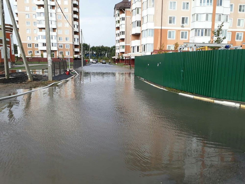 Подтопление проезжей части дороги и придомовых территорий жилых домов на улице Бориса Гмыри возникло в связи со значительными осадками.