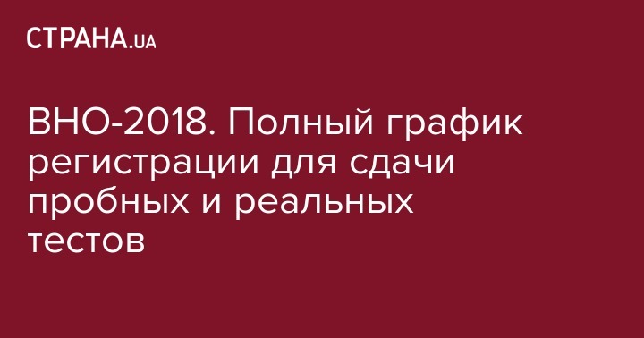 ВНО-2018. Полный график регистрации для сдачи пробных и реальных тестов