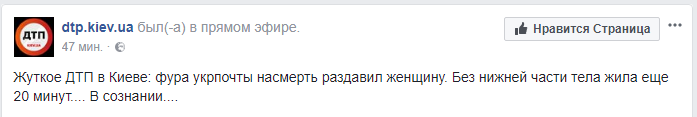 В Киеве фура "Укрпочты" дважды переехала женщину пополам