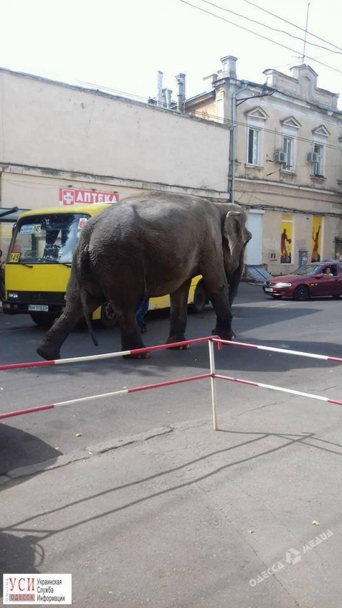 В Одессе слон гулял по проезжей части и мешал автомобилям. Фото