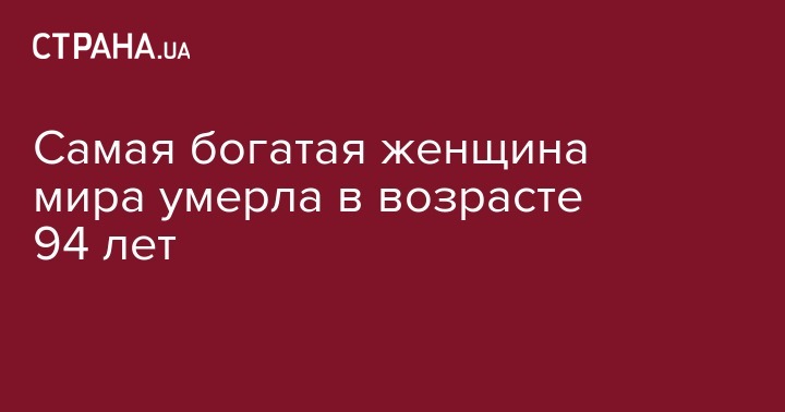 Дочь основателя косметической группы L'Oreal Лилиан Бетанкур, самая богатая женщина в мире по версии журнала Forbes, умерла в возрасте 94 лет.