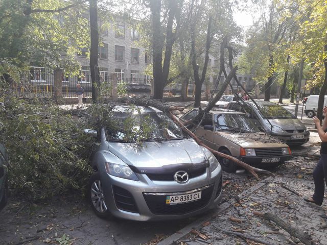 А в Запорожье по улице Мира старое дерево упало на авто припаркованное во дворе, обошлось без жертв. Об этом сообщает издание Антикор.
