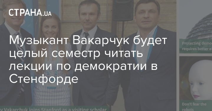 "По приглашению Стэнфордского Центра по вопросам демократии, развития и утверждения верховенства права (CDDRL) он (Святослав Вакарчук - прим.) будет читать лекции и принимать участие в ряде мероприятий Центра. Также Святослав получил возможность учиться, посещать курсы, лекции и семинары ведущих преподавателей Стенфорда", - указано в опубликованном сообщении, на страничке его музыкальной группы в соцсети.
