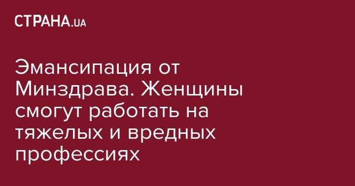 Как сообщала "Страна", в Минздраве готовятся приравнять женщин к мужчинам и разрешить им тяжелые работы.