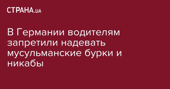 Немецкий Бундесрат (представительство федеральных земель Германии) одобрил запрет на ношение бурки и никаба (мусульманский женский головной убор, закрывающий лицо, с узкой прорезью для глаз. Изготавливается из ткани чёрного цвета - ред.) во время управления автомобилем.
