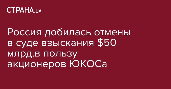 Окружной суд Гааги отменил решение о выплате Россией в пользу экс-акционеров "ЮКОСа" компенсации в размере $50 млрд. Об этом сообщает "Интерфакс" со ссылкой на представителя в суде Гааги.