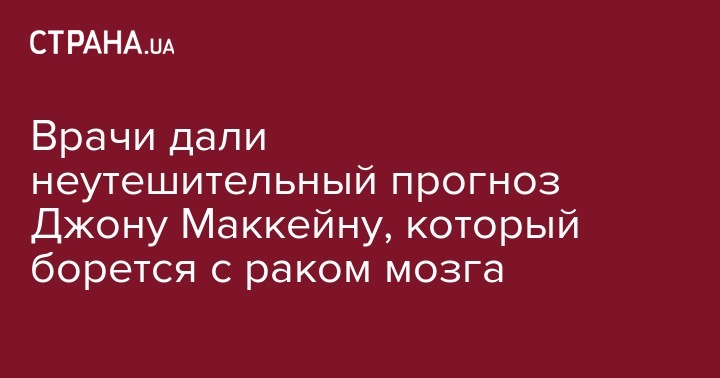 Американский сенатор-республиканец Джон Маккейн, который борется с раком мозга, сообщил, что врачи дают ему очень неутешительный прогноз.
