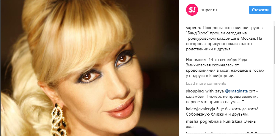 В Москве прошли похороны солистки группы "Банд’Эрос" Рады (Родики Змихновской). Об этом сообщил портал super.ru в Instagram.