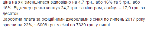 Заработная плата по официальным источникам с января по июль 2017 выросли на 22%, с 6008 грн в январе до 7339 грн в июле.