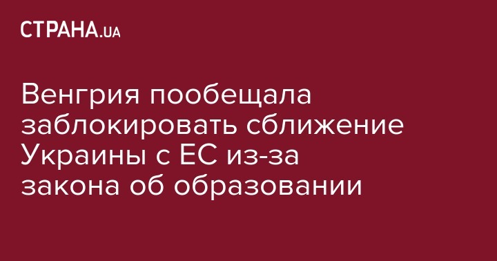 Власти Венгрии заявили, что из-за утверждения в Украине закона об образовании с уничтожением обучение на языках нацменьшинств они будут блокировать и ветировать любые предложения по сближению Украины с Евросоюзом. Заявление опубликовано на сайте правительства Венгрии.