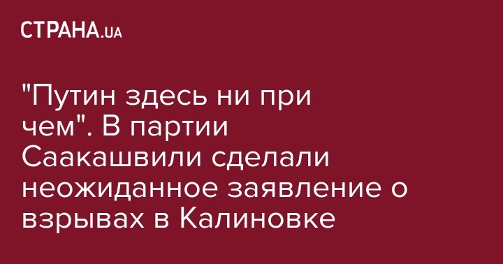 В партии Михаила Саакашвили "Рух новых сил" призвали власть не списывать на войну и российские диверсии все проблемы в стране, а нести ответственность за такие резонансные ЧП, как взрывы в Калиновке. Об этом политсила пишет в Facebook, ее пост поддержал нардеп Юрий Деревянко.