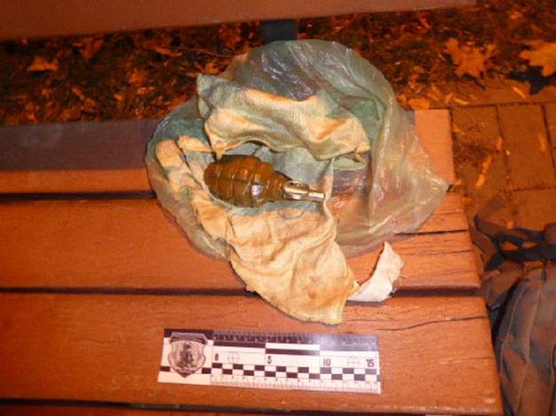 "В ходе осмотра одежды мужчины обнаружили предмет, похожий на гранату Ф-1 и запал к ней. Как он нам объяснил, эти предметы нашел и носил с собой, чтобы чувствовать себя в безопасности", - рассказал начальник Днепровского управления полиции Киева Александр Кузьмин.