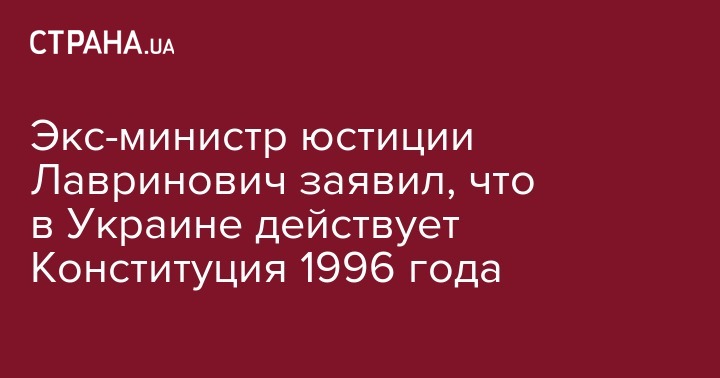 Экс-министр юстиции Украины Александр Лавринович настаивает, что в Украине действует текст Конституции в редакции от 28 июня 1996 года. Об этом сообщает "Интерфакс-Украина".