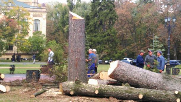 Киевляне возмущаются в социальных сетях, что в парке КПИ спилили 100-летнюю ель