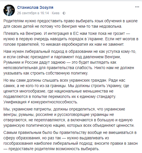 Станислав Зозуля призывает отменить языковые ограничения в законе, но не для соседей, а для себя, во имя либерализации Украины.