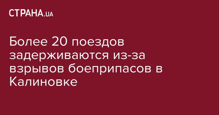 "Укрзализныця" заявляет, что более 20 поездов задерживаются по причине взрыва в арсенале Министерства обороны в Калиновке Винницкой области.