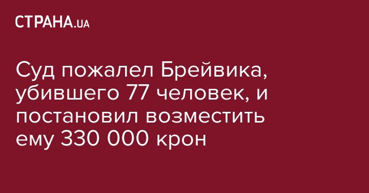 Суд, в частности, признал нарушающими права человека условия, в которых Андерс Брейвик отбывает наказание. Правительство Норвегии, говорится в постановлении суда, обязано возместить Брейвику затраты на процесс в размере 330 тысяч крон.