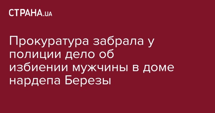 Расследованием обстоятельств дела об избитом в доме нардепа Юрия Березы жителе Кривого Рога Артеме Белом с 28 сентября занимается прокуратура Днепропетровской области. Об этом "Стране" сообщила спикер региональной Нацполиции Анна Старчевская и подтвердили в пресс-службе областного надзорного ведомства.