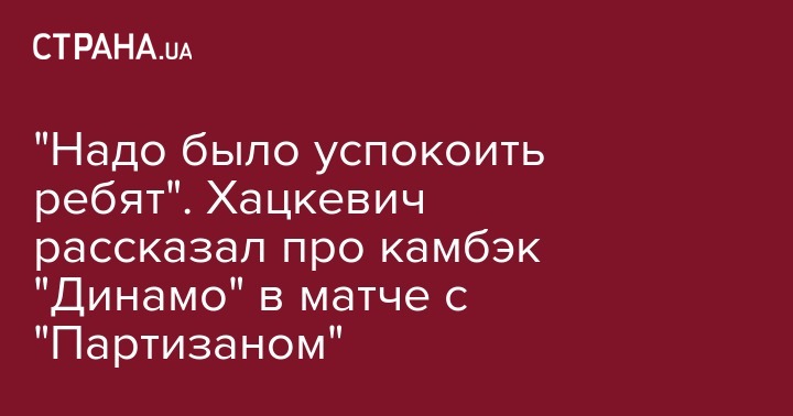 "Надо было успокоить ребят". Хацкевич рассказал про камбэк "Динамо" в матче с "Партизаном"
