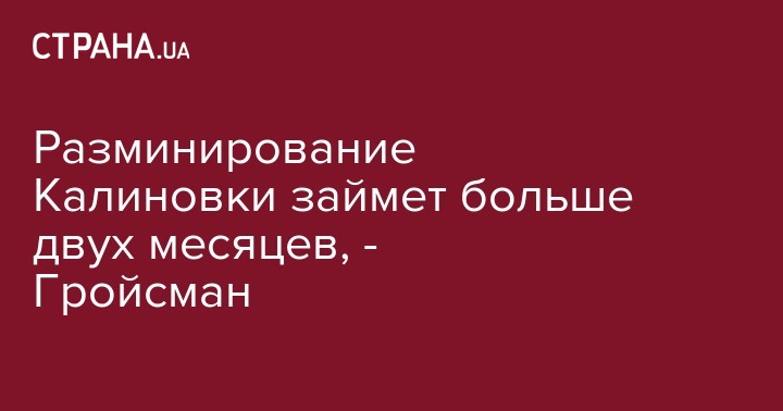 "Работы начаты и будут продолжаться до максимального восстановления. Для того, чтобы 10 тыс. га сегодня обследовать, нам потребуется около 2 месяцев. Ближайшие территории уже обследованы и разминированы. Работа будет продолжаться до конца ноября, мы будем работать,  и все 10 тыс. га обойдем каждый сантиметр на них, чтобы никакой угрозы не оставить для граждан", - отметил Гройсман.