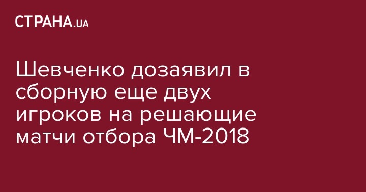 Шевченко дозаявил в сборную еще двух игроков на решающие матчи отбора ЧМ-2018