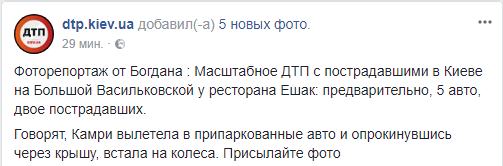 Очевидцы говорят, что Toyota Camry влетела в припаркованные авто и опрокинувшись через крышу, встала на колеса.