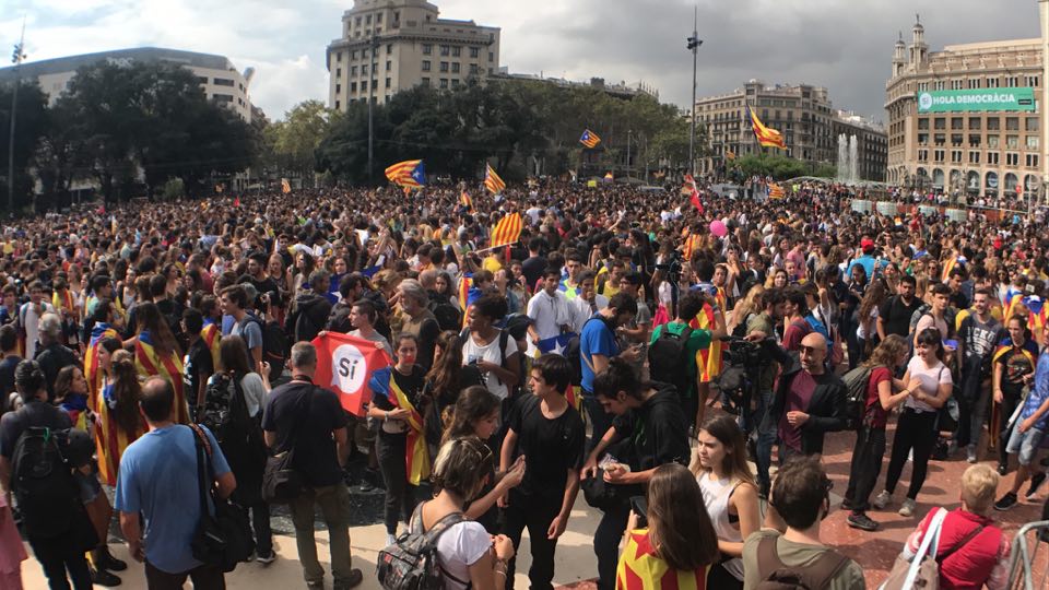 15:00 На площади Каталония проходит многотысячная акция протеста местных студентов. Его организовала платформа "Университеты для республики". Митингующие выражают протест против жестокого разгона сторонников референдума, который вчера устроила Национальная полиция и Гражданская гвардия.