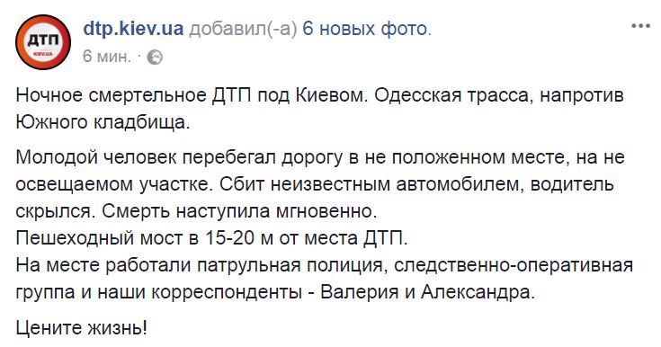 Напротив Южного кладбища под Киевом водитель сбил молодого парня и скрылся